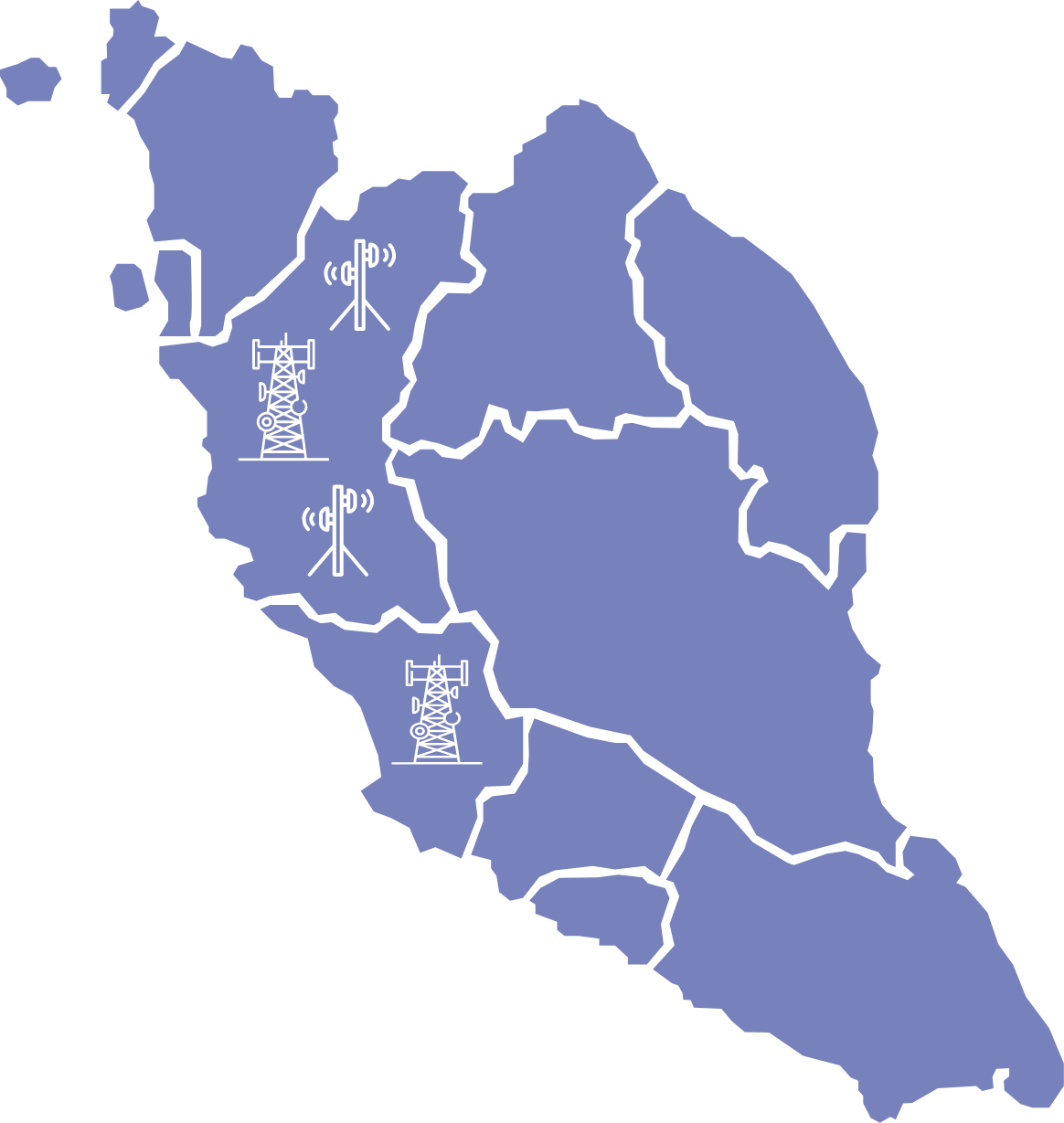 We own 17 telecommunications towers across Kuala Lumpur, Selangor, and Perak.